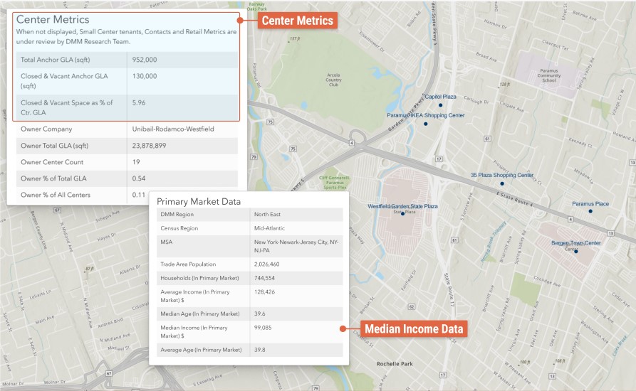 In addition to these classifications, DMM provides users with anchor store details (size and status), trade‑area maps, mobile‑observed visitor data, demographics, PRIZM segmentation profiles, and geofenced boundaries. DMM relies on a dedicated team of researchers to manually verify data sources, going beyond automated methods like web scraping. This hands-on approach ensures that any changes in the retail and shopping center market are accurate and up-to-date before being shared with customers, resulting in more trustworthy insights and stronger analytics.