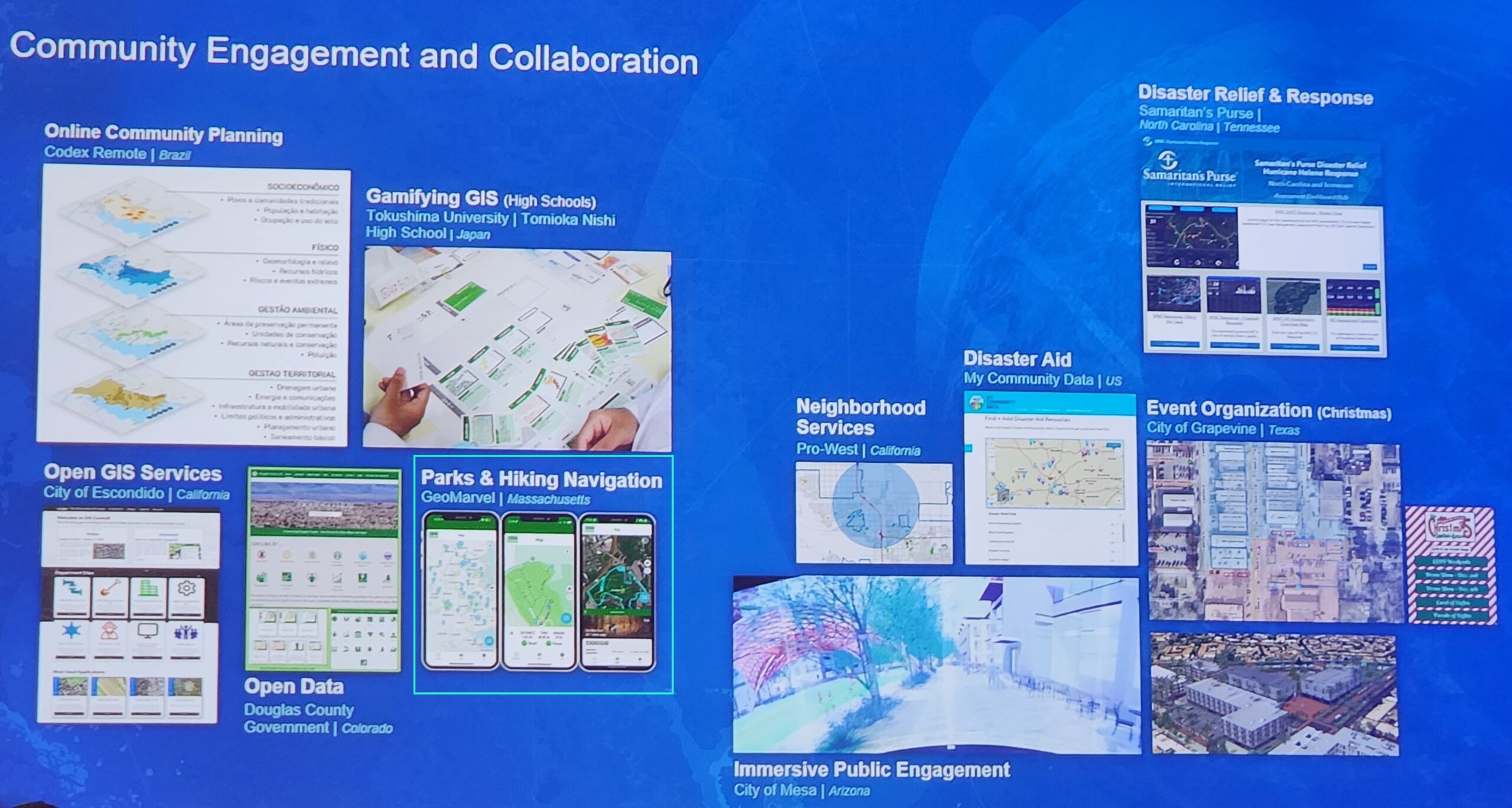 Several innovative GIS applications were highlighted in the conservation science, land and resource management, agriculture, urban planning, and climate mitigation industries. From mapping biodiversity and monitoring peatlands in the Congo to optimizing waste collection routes, Jack demonstrated how spatial data is being used to solve complex, real-world challenges. He also praised large-scale collaborative efforts, such as the International Geodesign Consortium, which is using local-to-global workflows to address climate change and urban development.