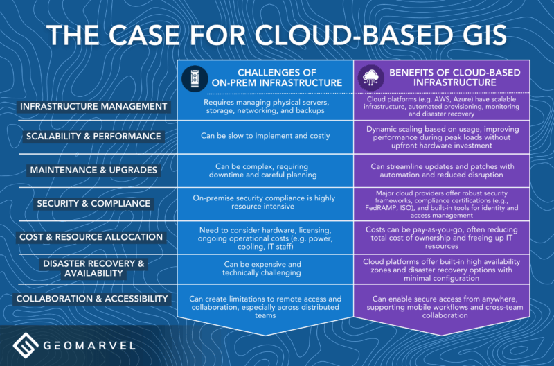 Their session titled “Modernizing Enterprise GIS in the Cloud: Patterns, Practices, and Real-World Lessons”, explored how organizations are leveraging cloud-based architectures to build more scalable, resilient, & efficient GIS environments. Below, you’ll see an overview of “The Case for Cloud-Based GIS” presented in this session, showcasing the challenges with on-premise infrastructure & the many benefits of utilizing a cloud-based infrastructure.